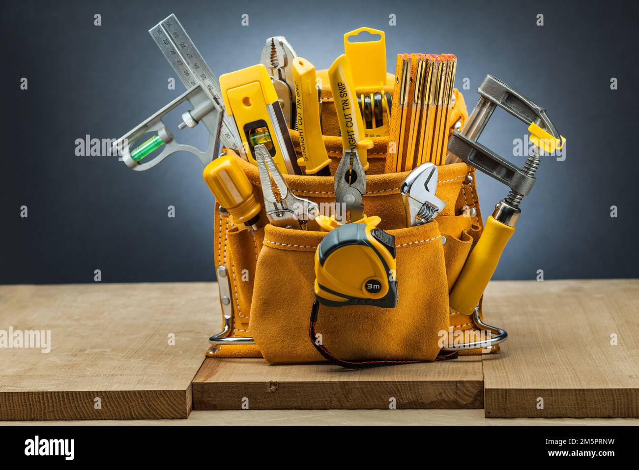 leather working tool belt with many construction tools Stock Photo Alamy