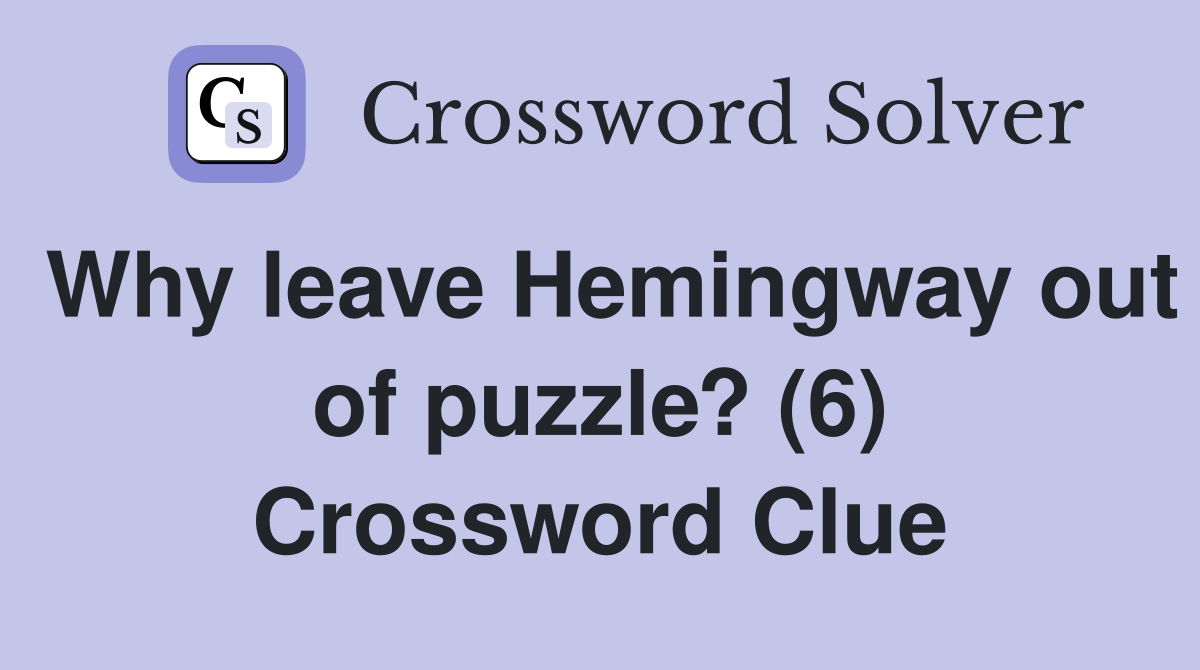 Why leave Hemingway out of puzzle? (6) Crossword Clue Answers