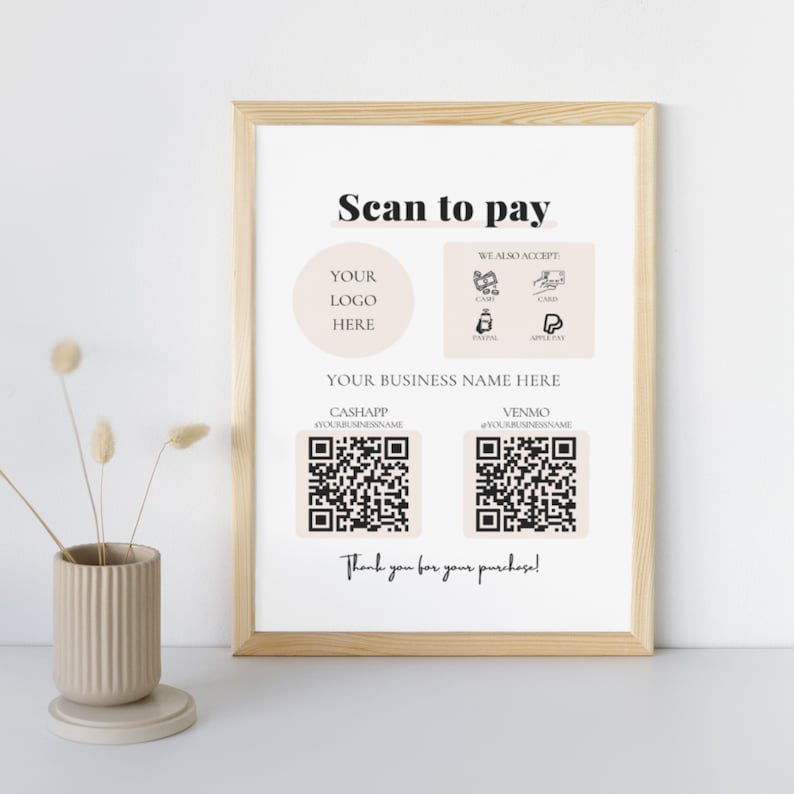 Leave Us Review QR Code Sign Google Review Editable Sign Scan to Pay