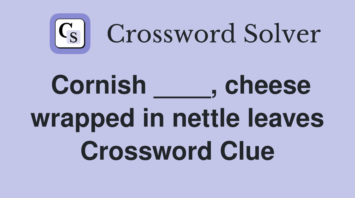 Cornish cheese wrapped in nettle leaves Crossword Clue Answers