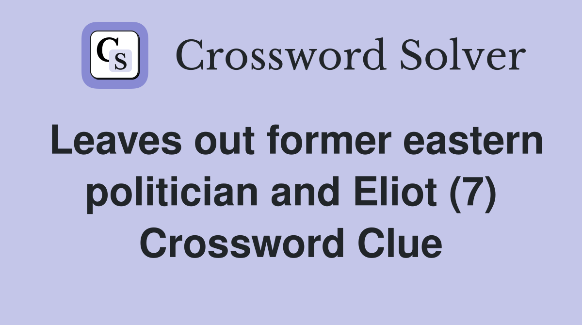Leaves out former eastern politician and Eliot (7) Crossword Clue