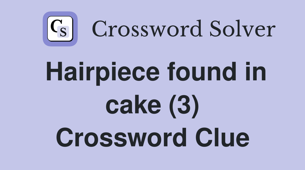 Hairpiece found in cake (3) Crossword Clue Answers Crossword Solver