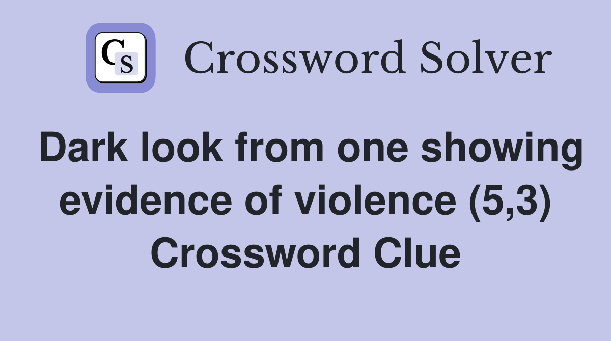Dark look from one showing evidence of violence (5 3) Crossword Clue