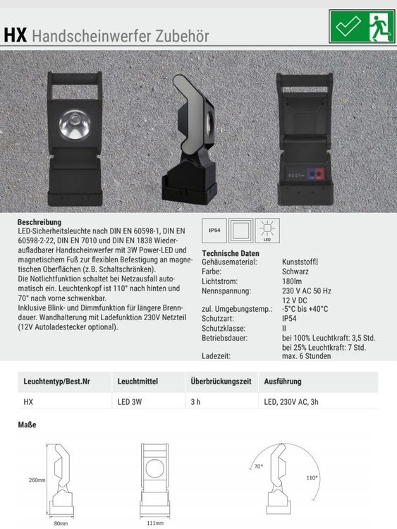 LED Handscheinwerfer HX 3W LED Akku LED Sicherheitsleuchte (Neu (gemäss