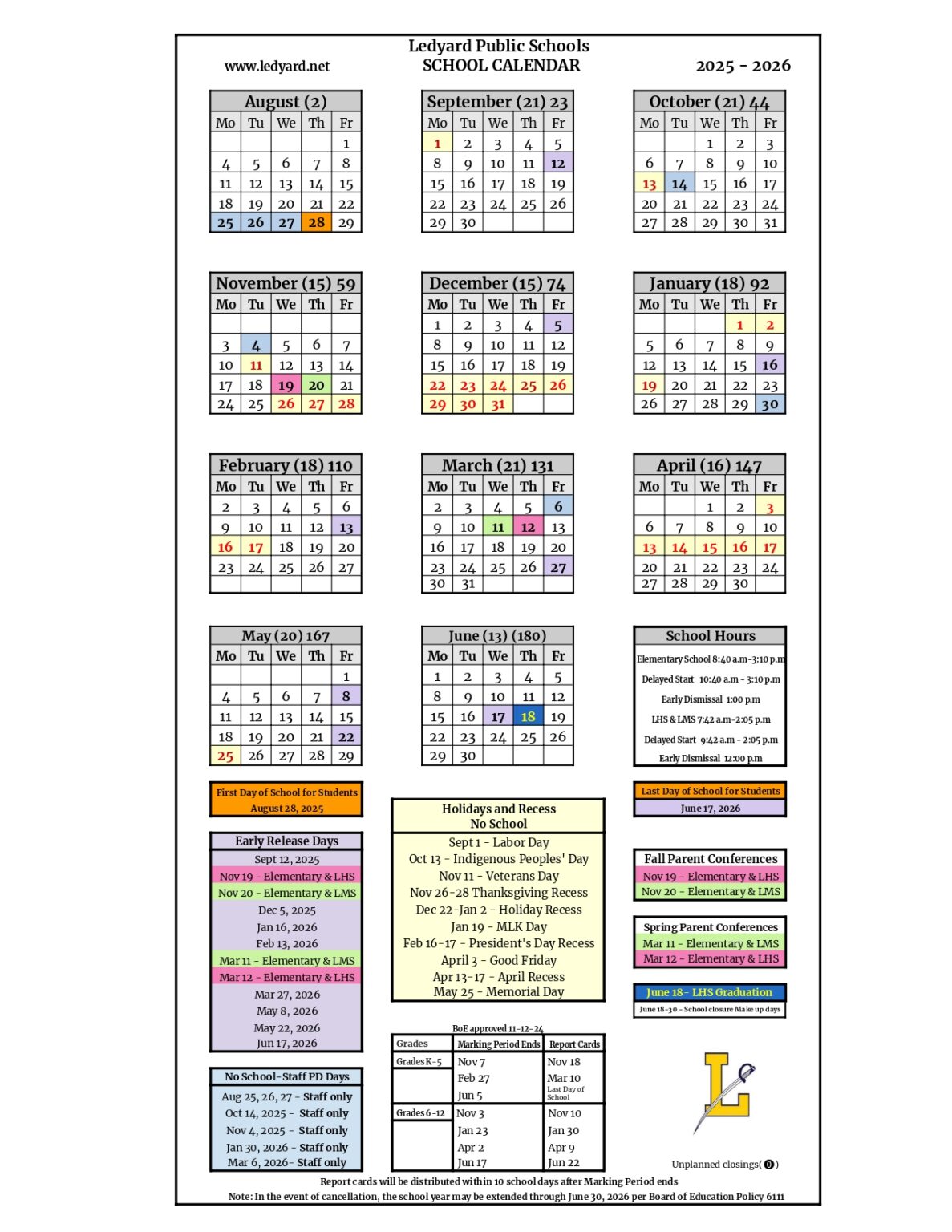 Ledyard Public Schools 2025 26 Calendar Dawna Erminia