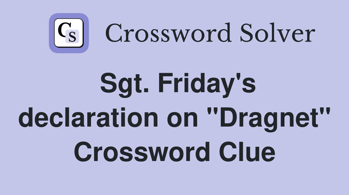 Sgt Friday #39 s declaration on quot Dragnet quot Crossword Clue Answers