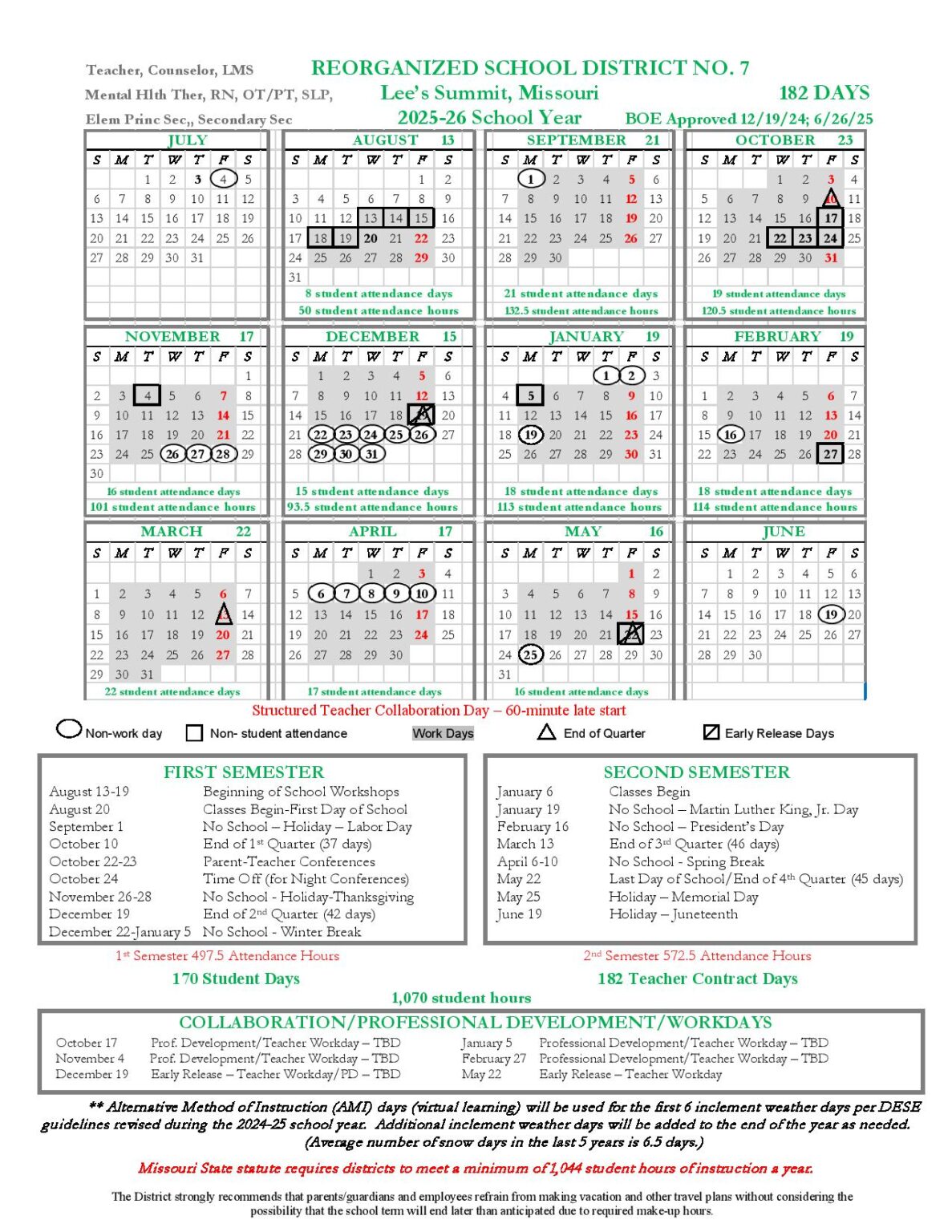 Lee s Summit School District Calendar 2025 2026 in PDF