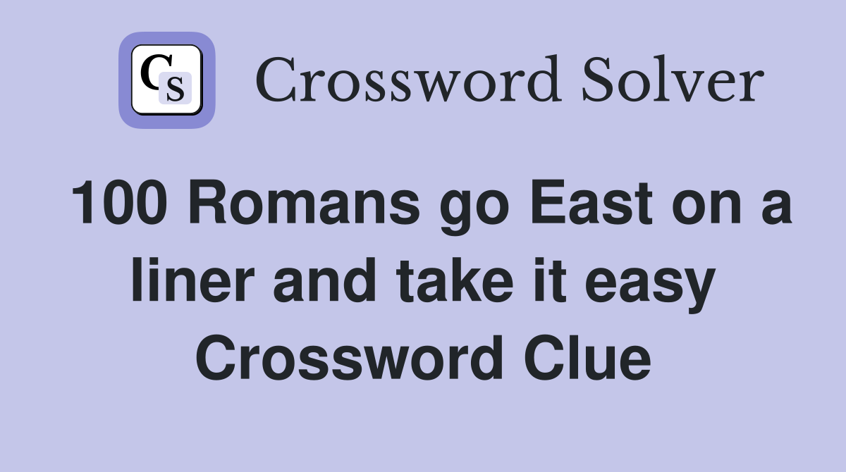 100 Romans go East on a liner and take it easy Crossword Clue Answers