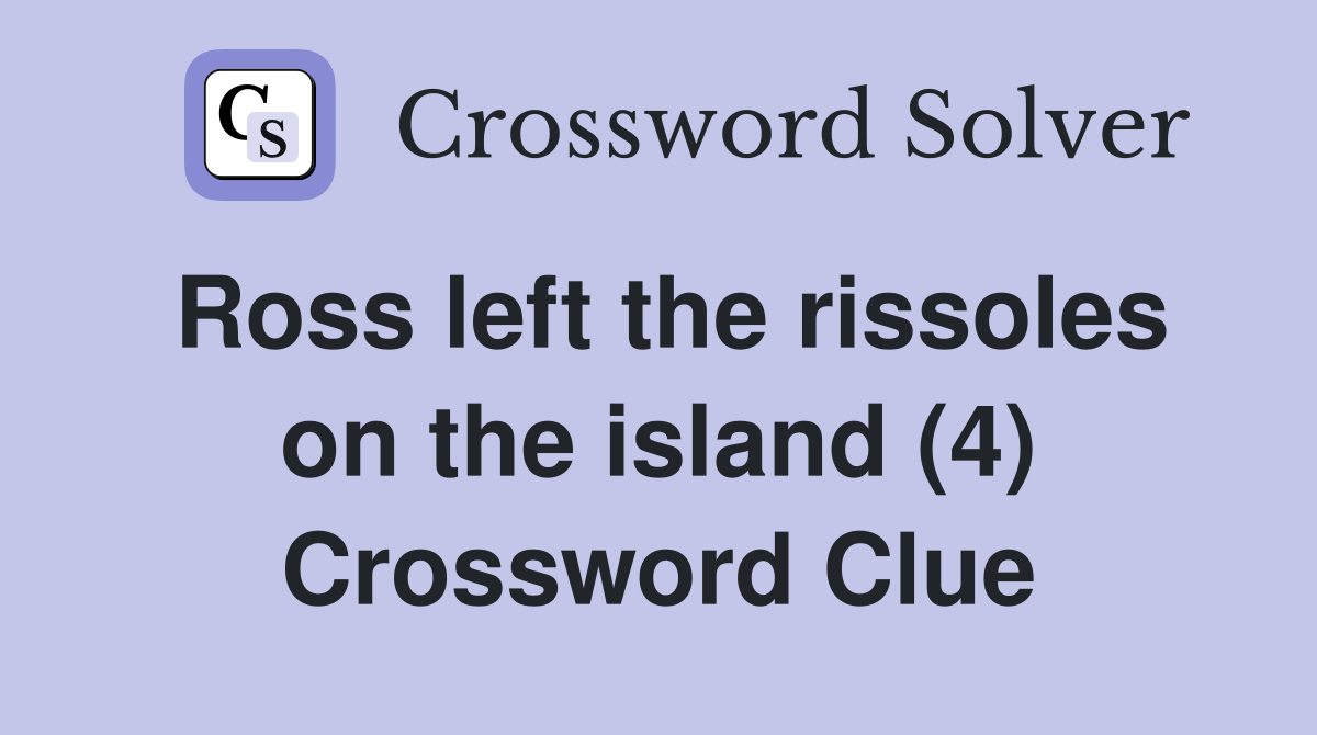 Ross left the rissoles on the island (4) Crossword Clue Answers