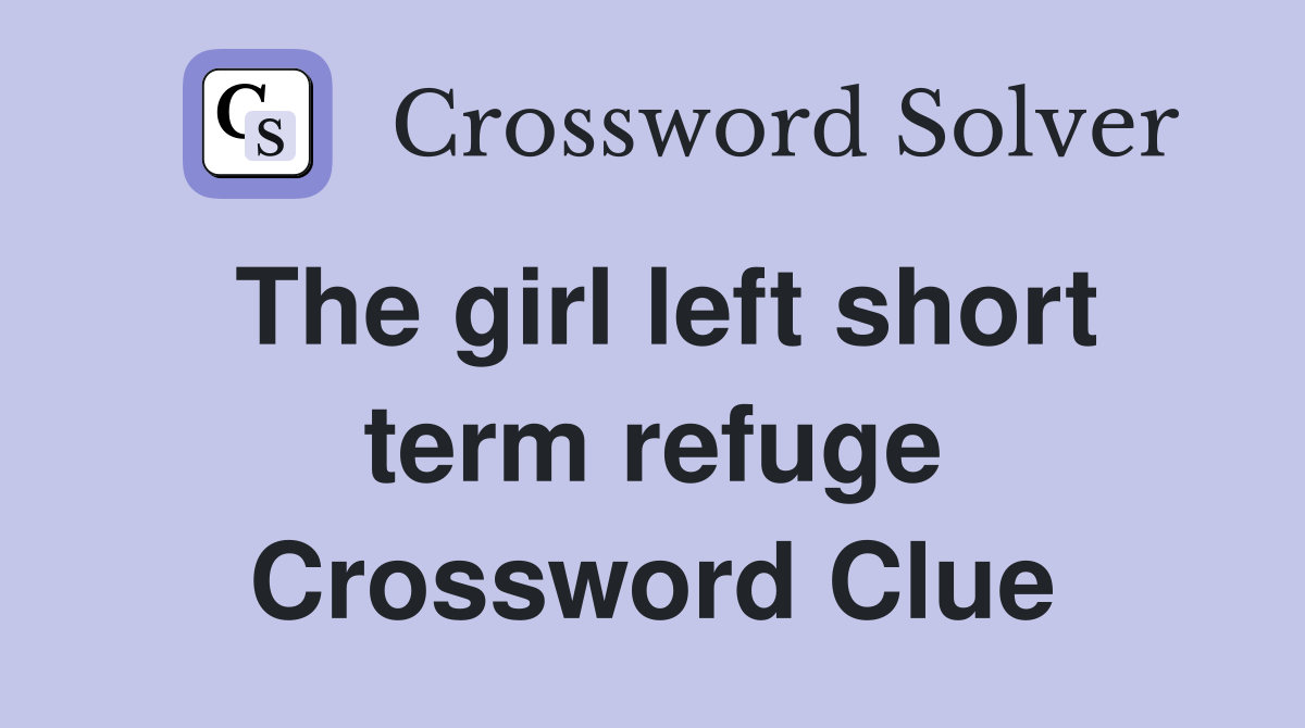 The girl left short term refuge Crossword Clue Answers Crossword Solver
