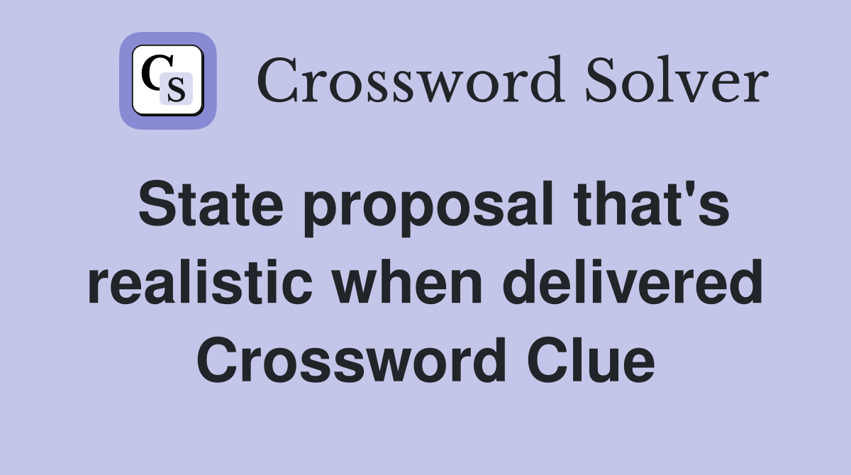 State proposal that #39 s realistic when delivered Crossword Clue Answers