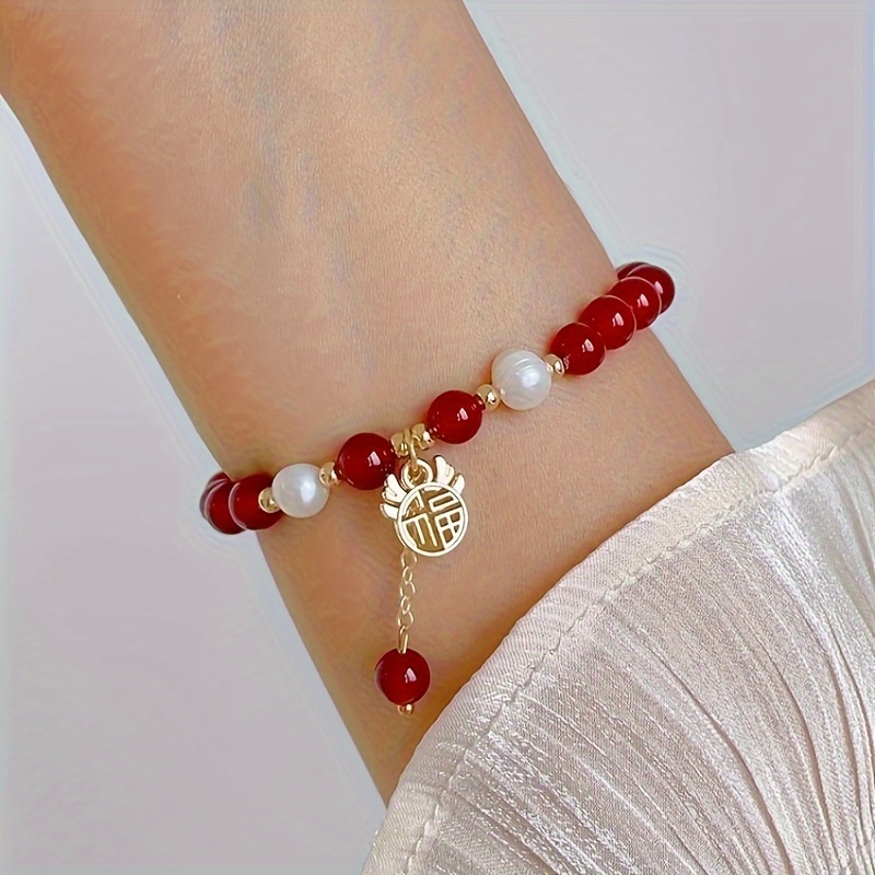 Lucky Chinese Character Design Beaded Bracelet Court Chinese Temu