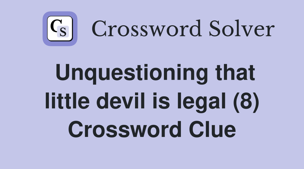 Unquestioning that little devil is legal (8) Crossword Clue Answers