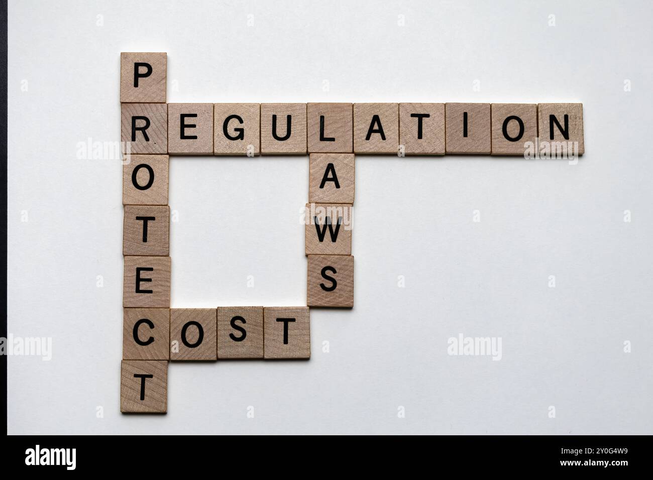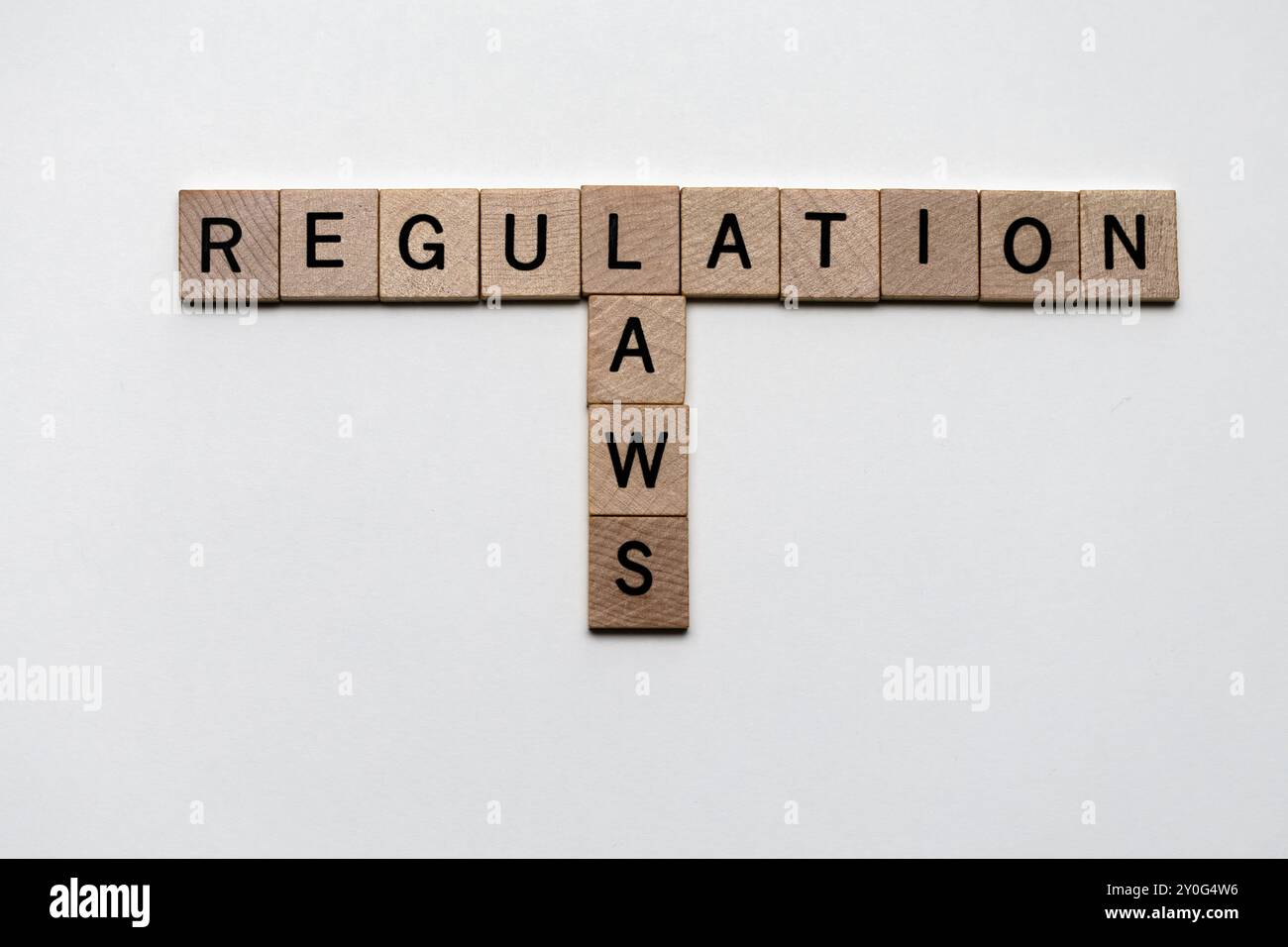 Close Up Wooden Tiles Form Crossword Puzzle with Words quot Laws quot and