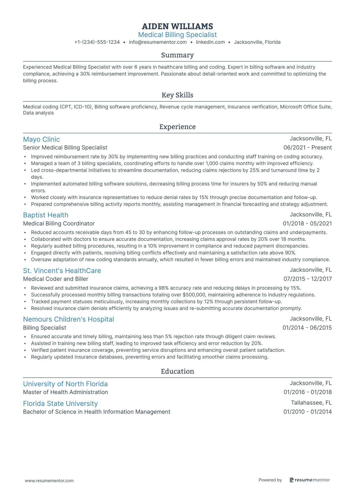 10 Medical Billing Specialist Resume Samples Templates for 2025