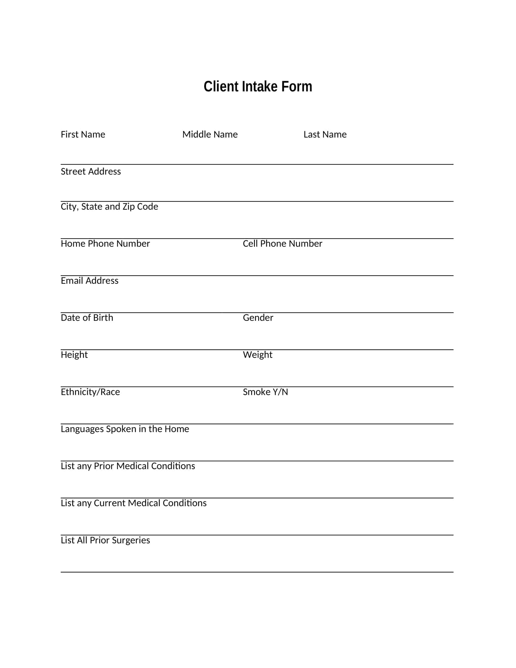 Free Printable Client Intake Form Templates Word PDF Excel Example