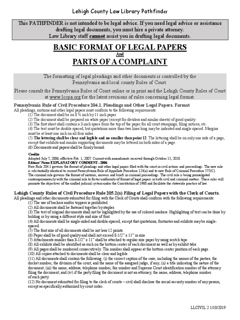 Format Legal Papers Sample Complaint Pathfinder PDF