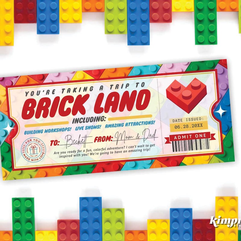 5 Custom Legoland Trip Gift Ticket Vacation Ticket Instant Download
