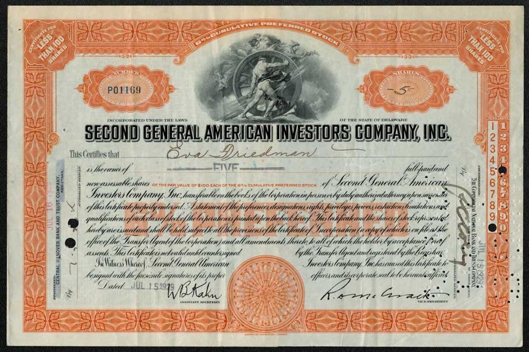 Second General American Investors Company Stock Certificate Lehman