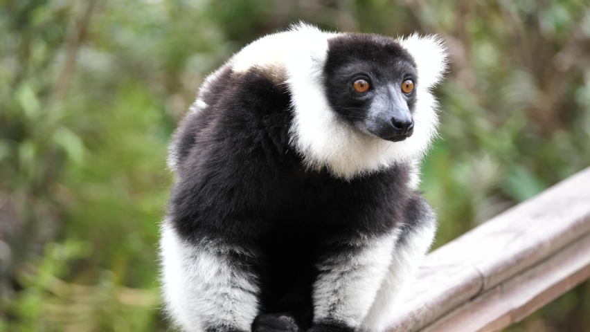 Black and White Ruffed Lemur Gets a Close Up on a Sunny Day in