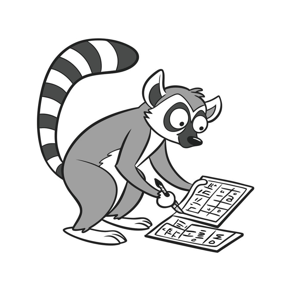 Cheerful Lemur Enjoying Crossword Puzzle Fun 55187123 Vector Art at