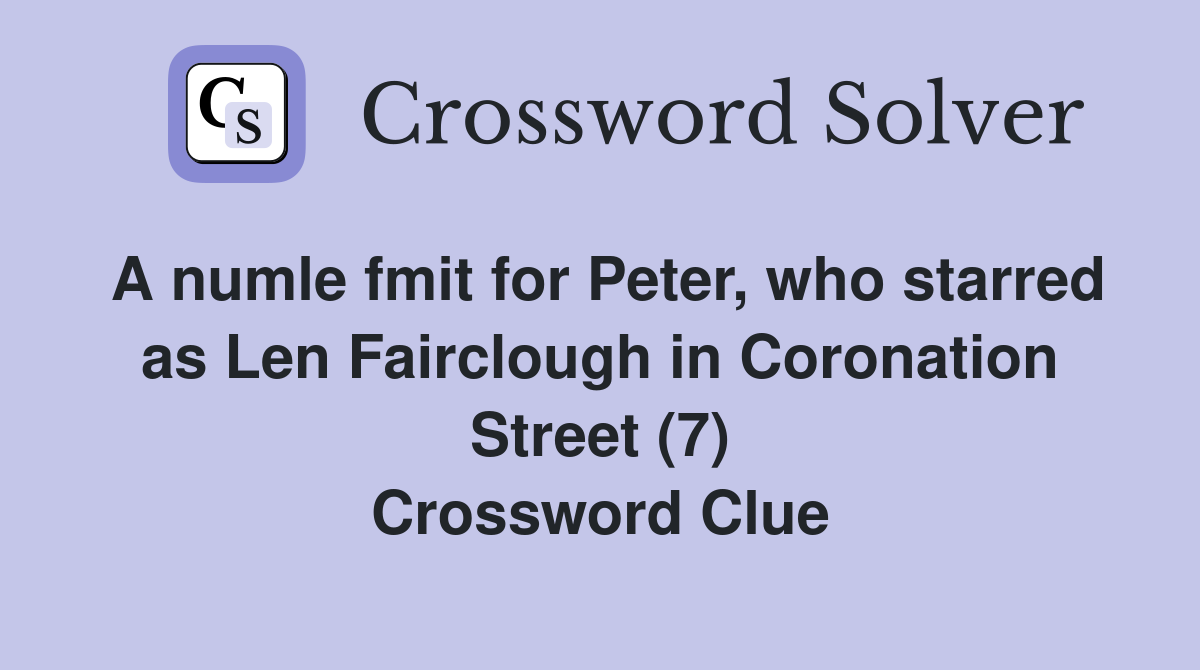 A numle fmit for Peter who starred as Len Fairclough in Coronation