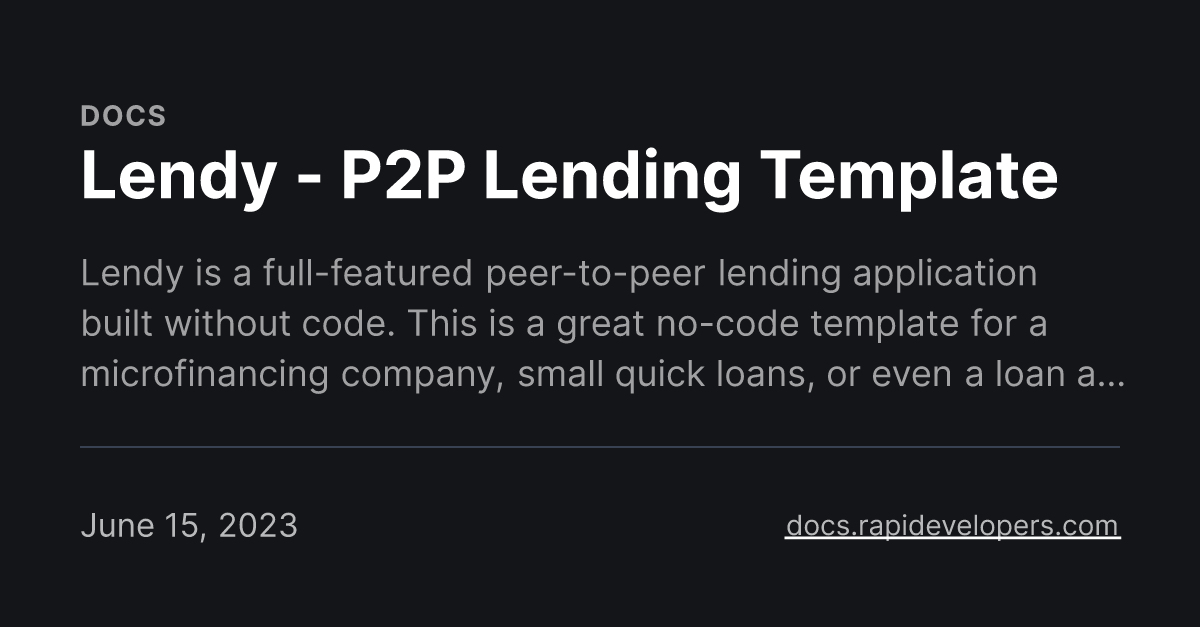 Lendy P2P Lending Template