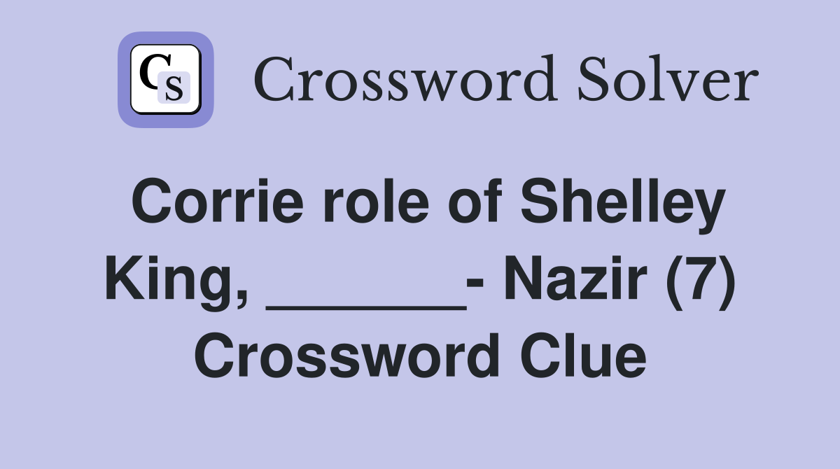 Corrie role of Shelley King Nazir (7) Crossword Clue Answers