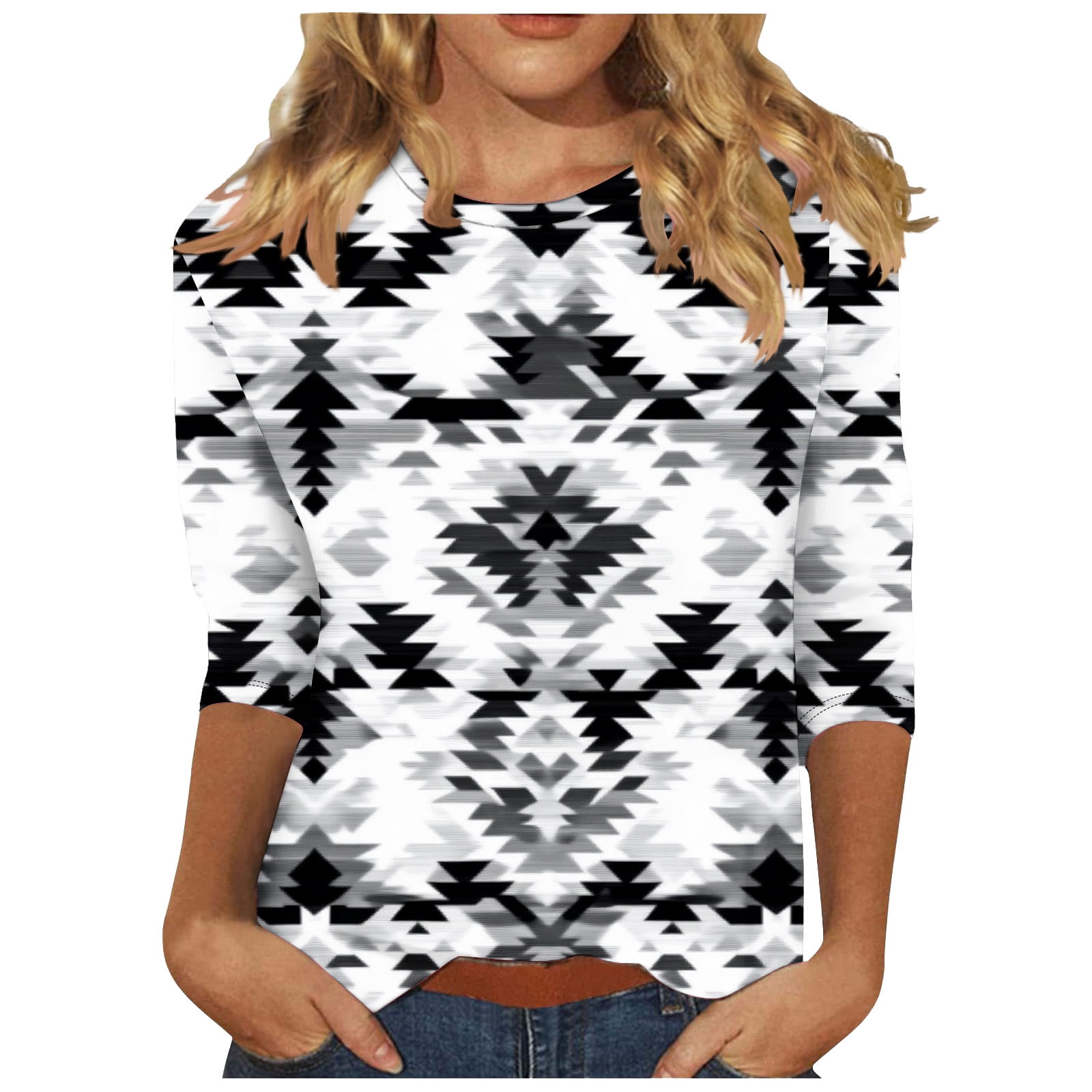 3/4 Sleeve Shirts for Women Spring Crewneck Business Casual Tops Loose