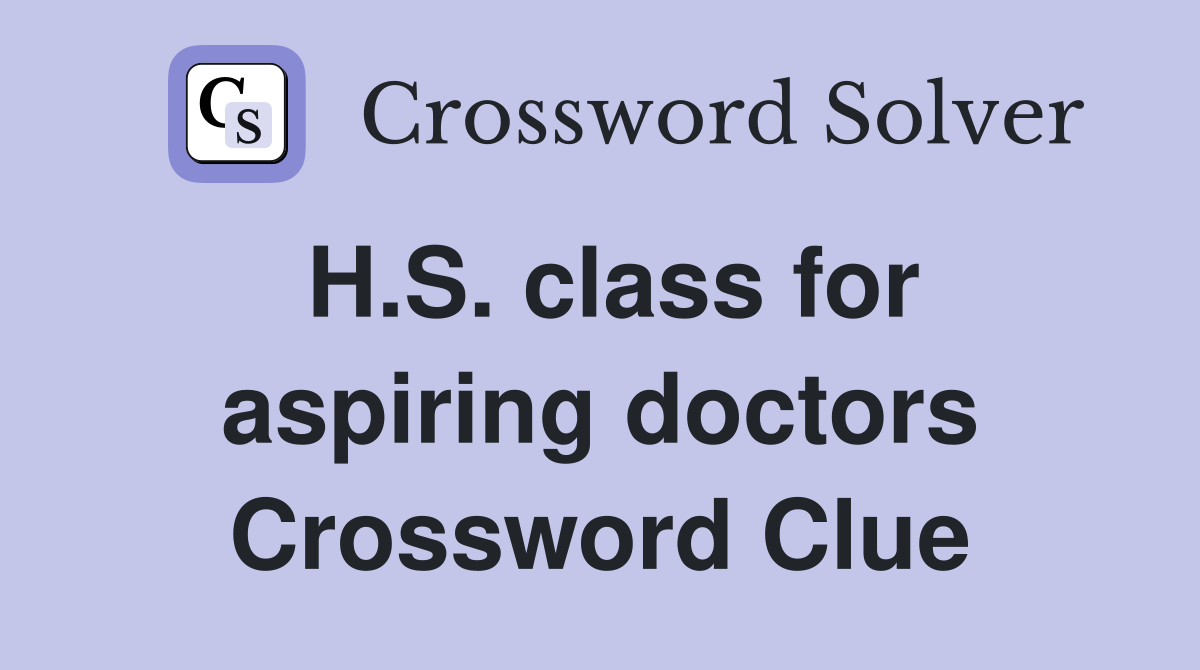 H S class for aspiring doctors Crossword Clue Answers Crossword Solver
