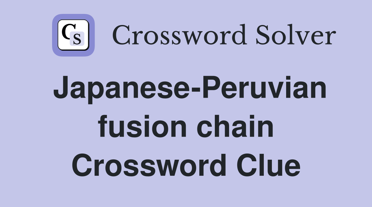 Japanese Peruvian fusion chain Crossword Clue Answers Crossword Solver