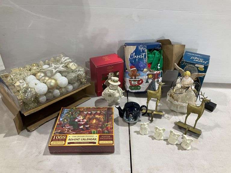 Collection of Holiday Decorations and Puzzles Including Lenox Snowman