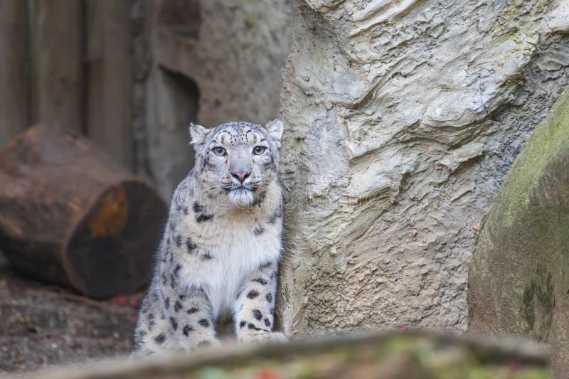 A Big Leopard like Cat Irbis Panthera Uncia is Lying Down and Resting
