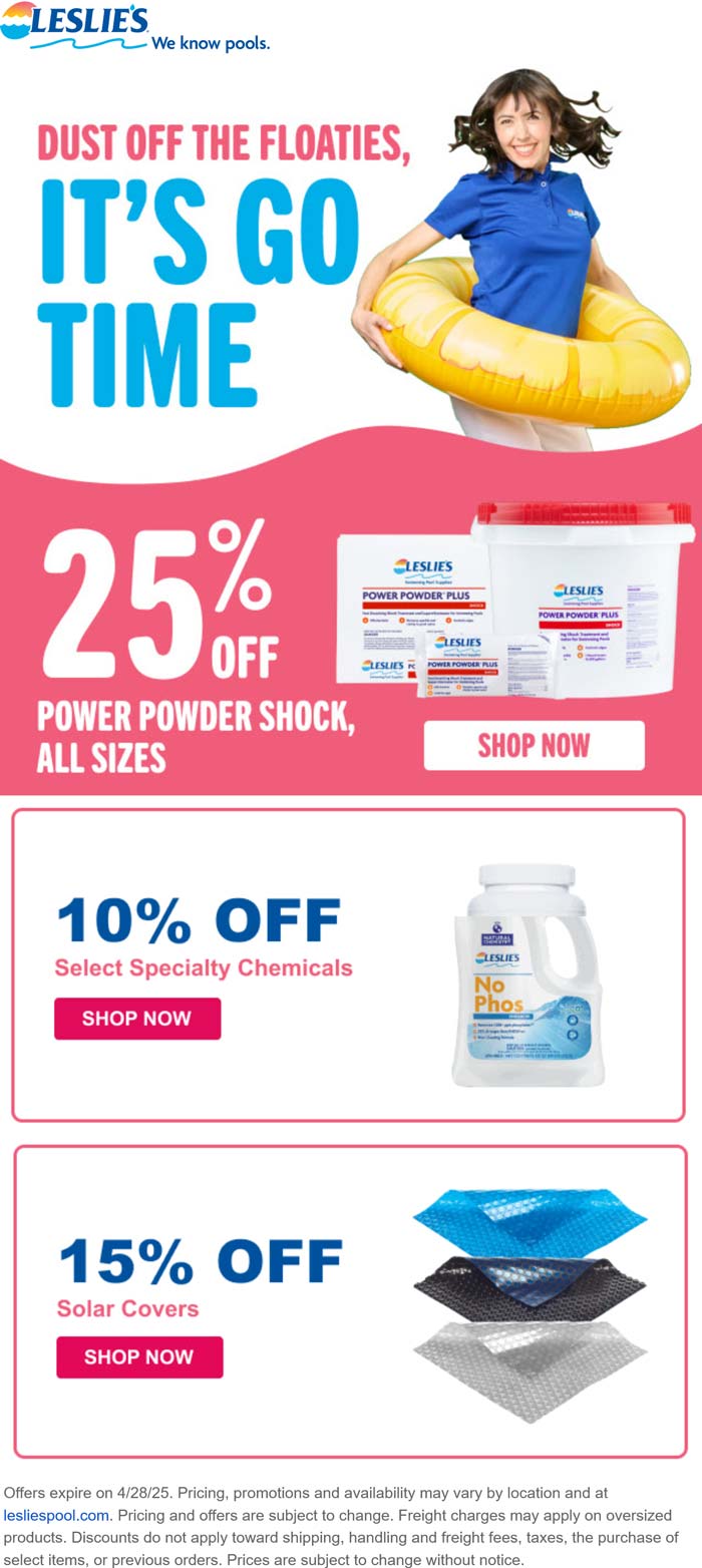 25% off shock more at Leslies pool supplies #leslies The Coupons App®