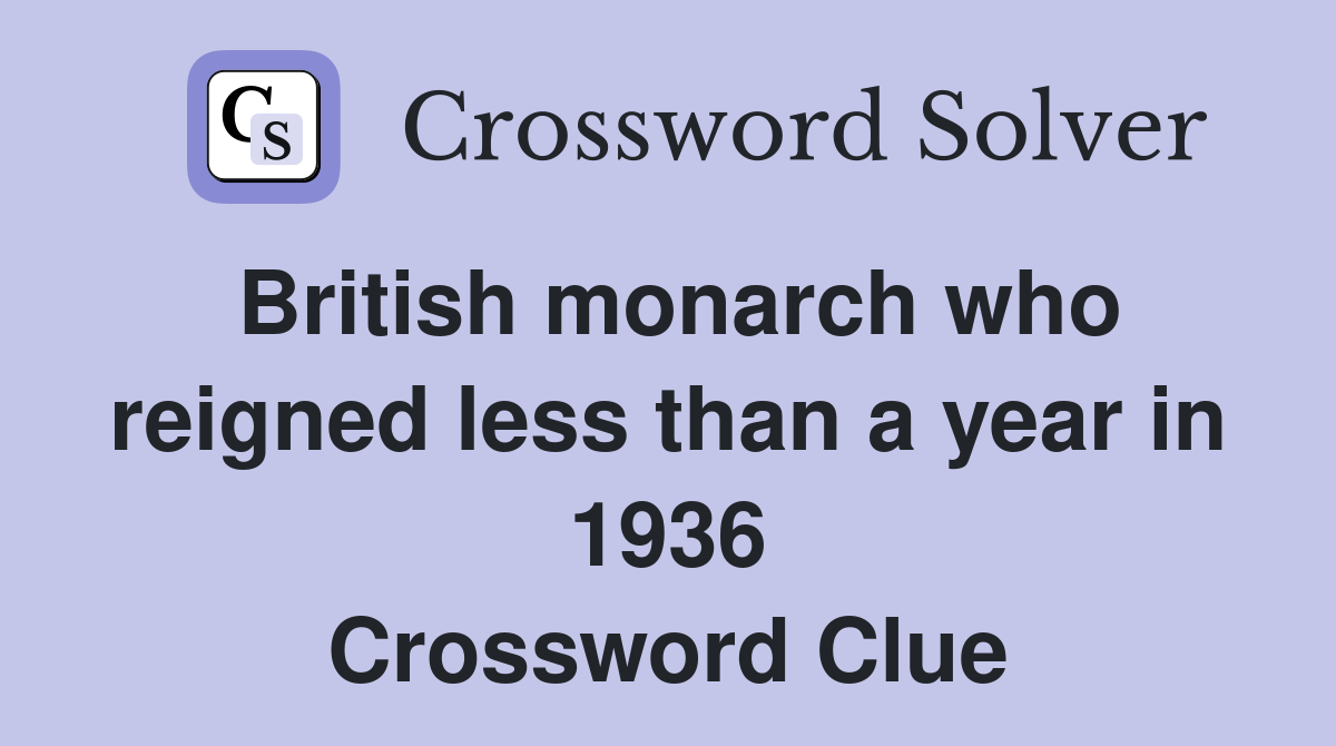 British monarch who reigned less than a year in 1936 Crossword Clue