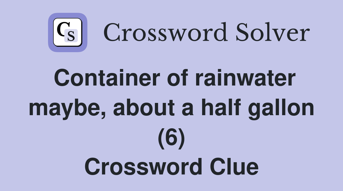 Container of rainwater maybe about a half gallon (6) Crossword Clue