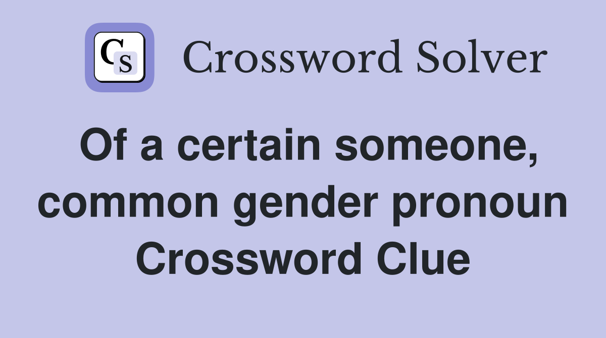 Of a certain someone common gender pronoun Crossword Clue Answers