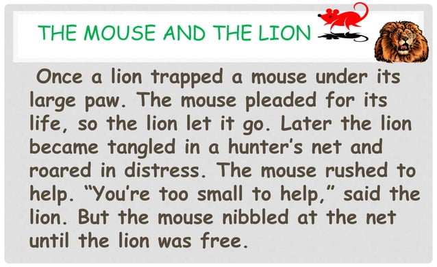 Fable: The lion and the mouse ESL worksheet by Isabelucha