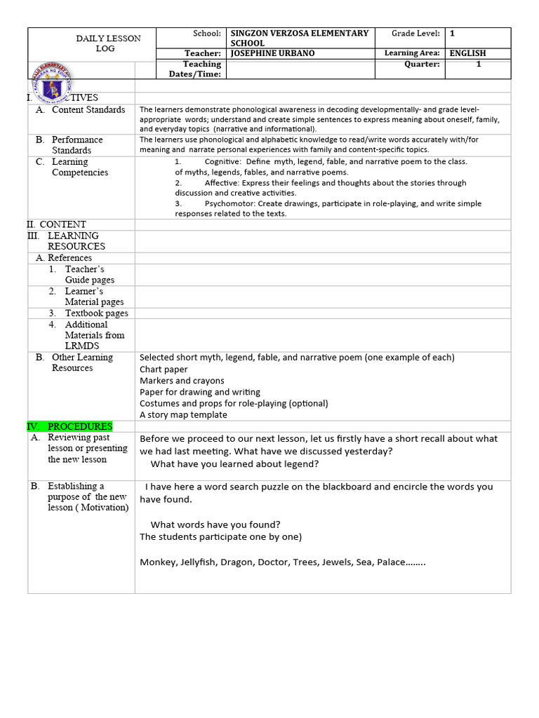 Lesson Exemplar Quarter 1 MAAM JOSIE Download Free PDF Learning