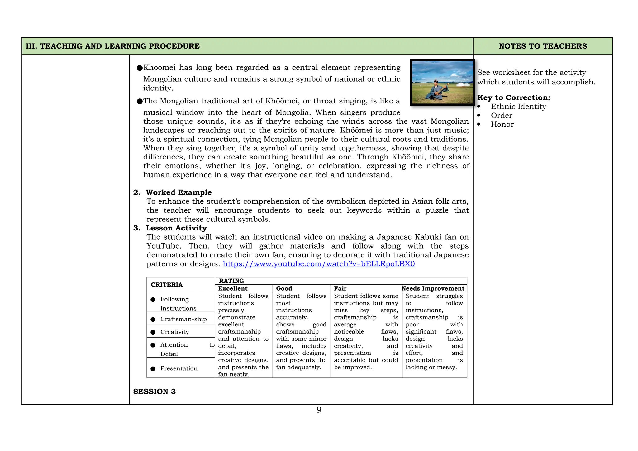 Sample Lesson Plan for Values Peace and Health Education for Catch Up