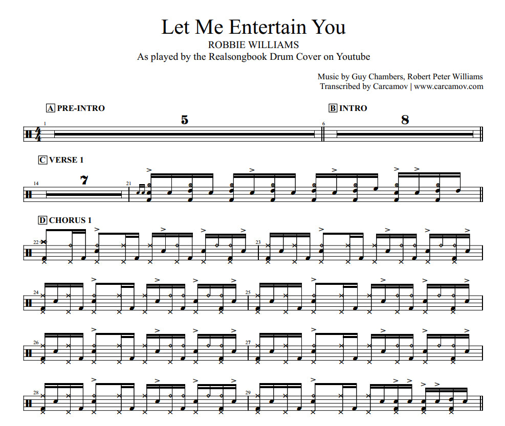 Let Me Entertain You Drum Sheet Music ROBBIE WILLIAMS