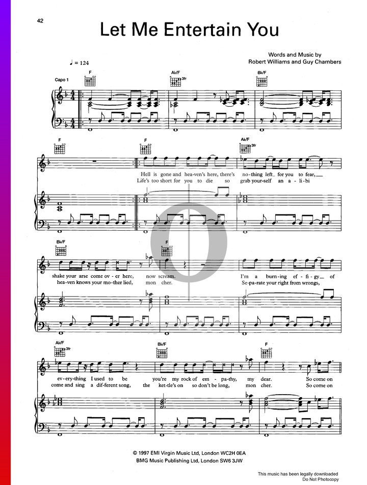 Let Me Entertain You sheet music for piano solo (PDF interactive)