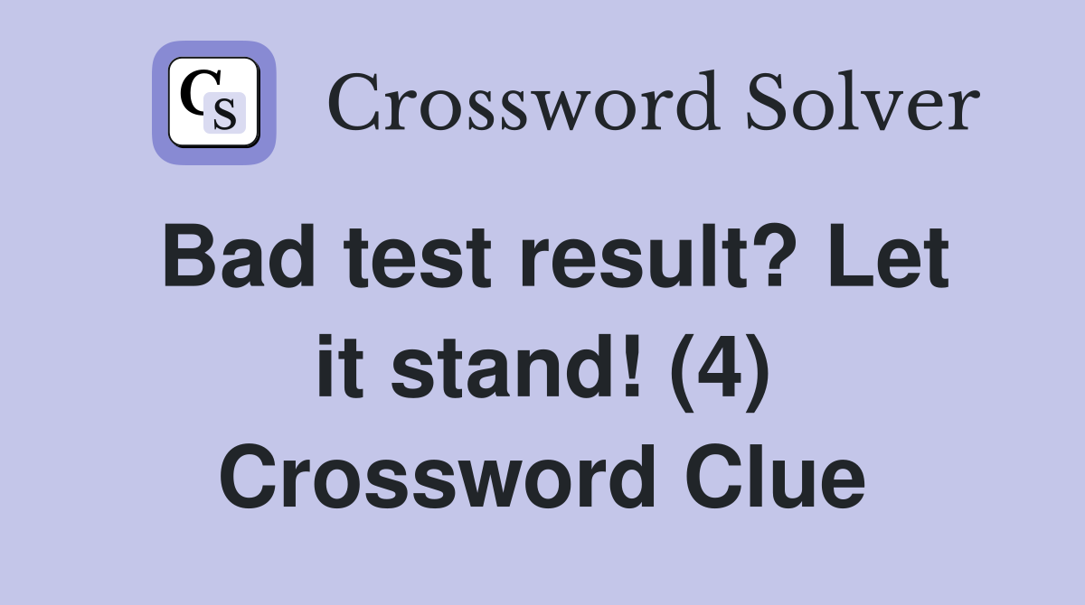 Bad test result? Let it stand (4) Crossword Clue Answers Crossword