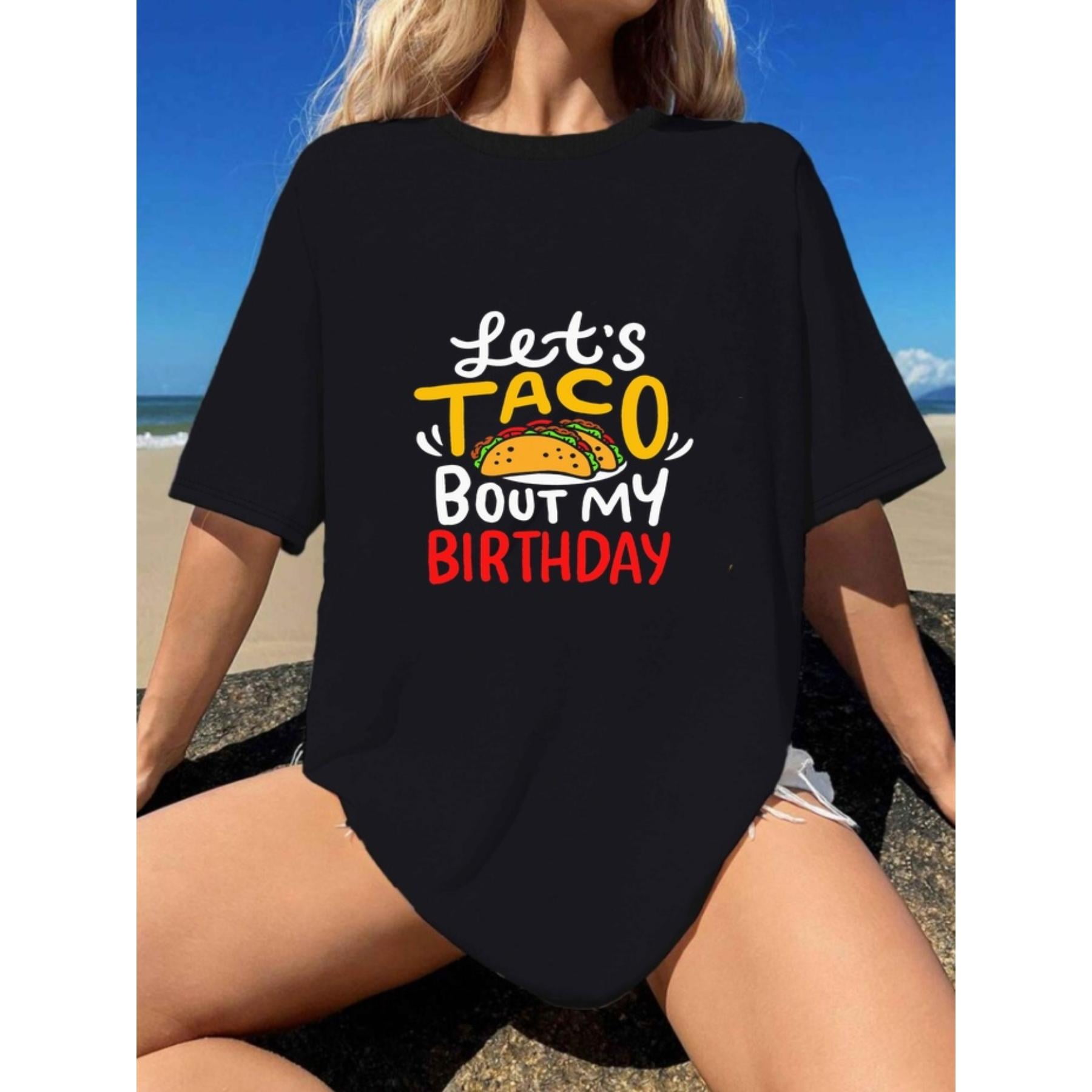Fashion Word Frint Tee tops with quot Let #39 s Taco Bout My Birthday quot text