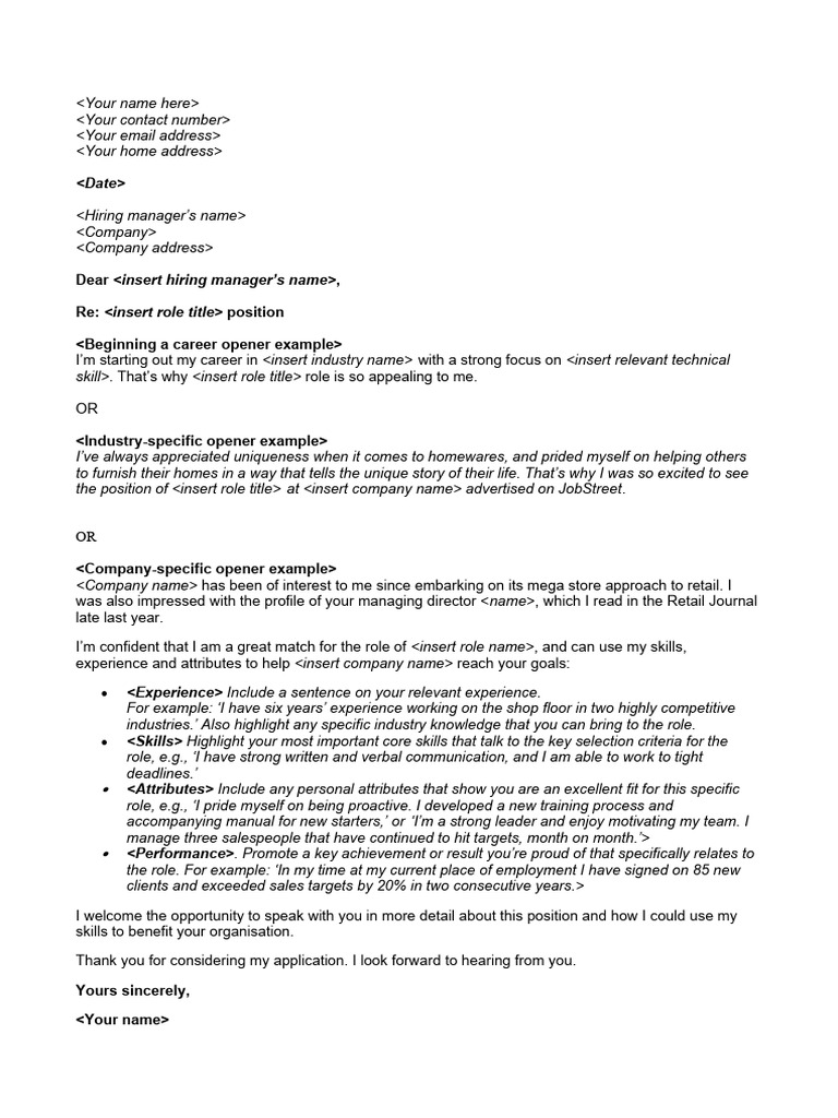 JobStreet Free Cover Letter Template PDF Sales Human Communication