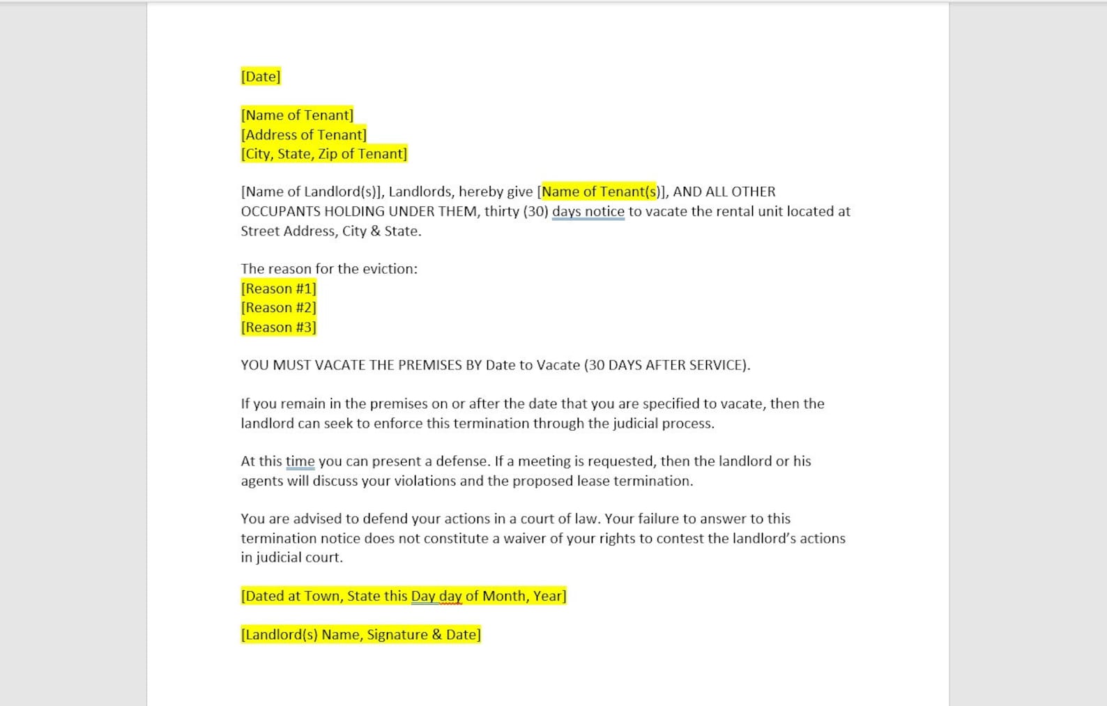 Here are some of the images for Letter Of Eviction Template that we found in our website database.