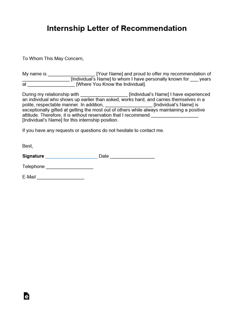 Here are some of the images for Letter Of Recommendation Template For Internship that we found in our website database.