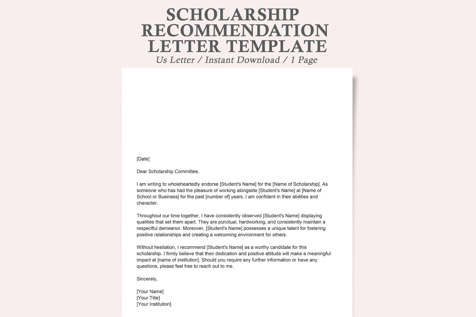 Student Scholarship Recommendation Letter Template