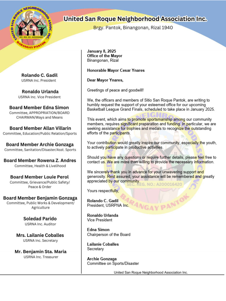 Letter of Request For Mayor PDF