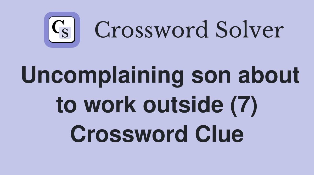 Uncomplaining son about to work outside (7) Crossword Clue Answers